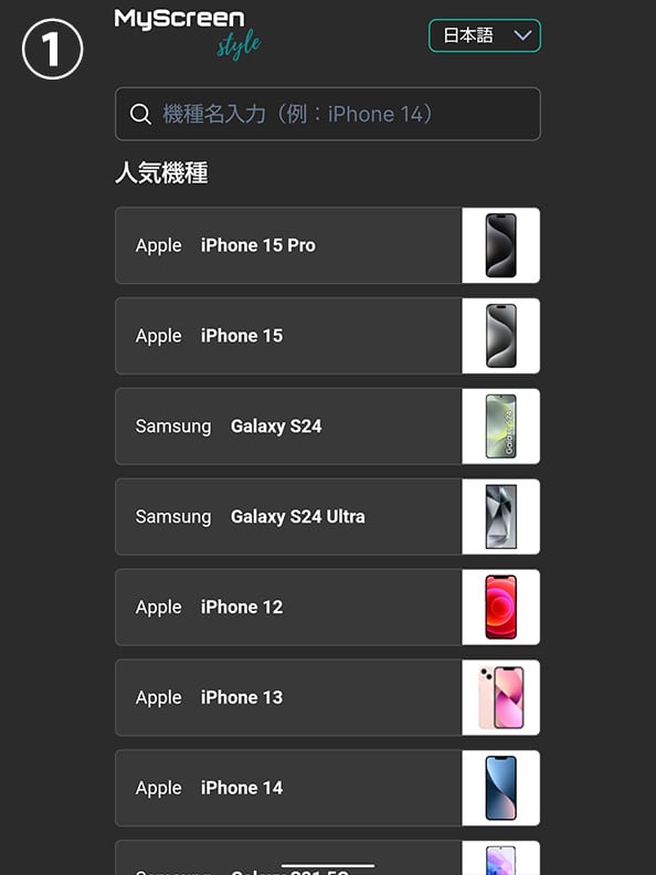 下記バナーよりデザイン作成ウィザードにアクセスし、スマートフォンの機種を選択。または検索してください。
